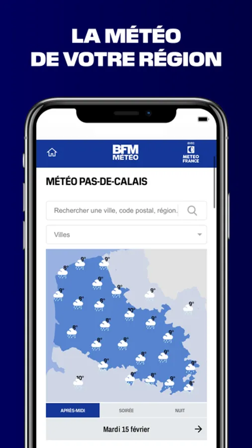• A la rubrique «Météo» qui vous permet d'accéder aux prévisions météo en temps réel et dans toute la région Hauts-de-France (température, intempéries, indice UV, force du vent…)