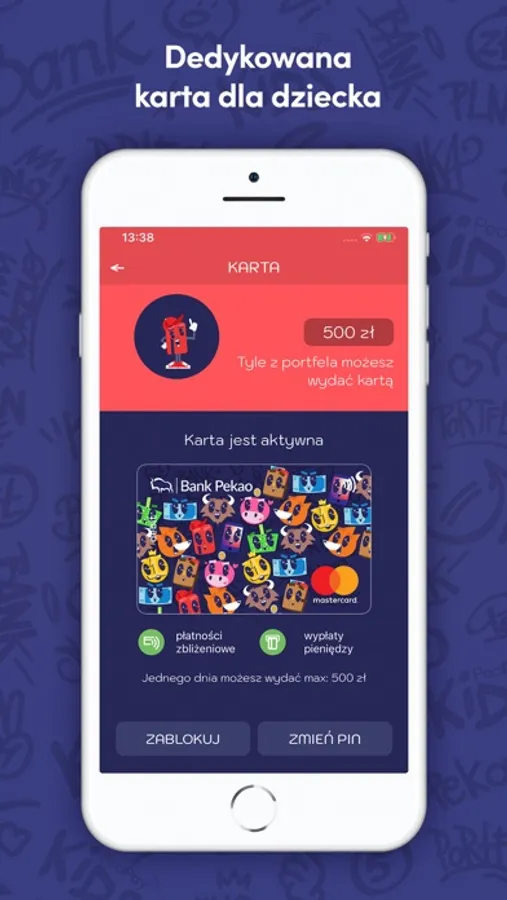 Dedykowanej Karty PeoPay Kids – wydawanej do konta dziecka, dzięki której może bezpiecznie realizować drobne płatności w sklepach, automatach lub wypłacić pieniądze z bankomatu w ramach określonych przez Ciebie limitów.