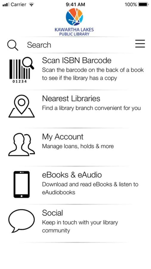 Access the Kawartha Lakes Public Library on all your iOS devices. The Kawartha Lakes Public Library mobile app makes it easy to search the catalogue and discover title, download items, place holds, renew items and get information about our library branches. Quickly search the collection. Get the details on any title, anytime and anywhere, including descriptions. Check a title’s availability. Place and manage holds. Renew items. Check branch hours. Find and download ebooks and audiobooks.