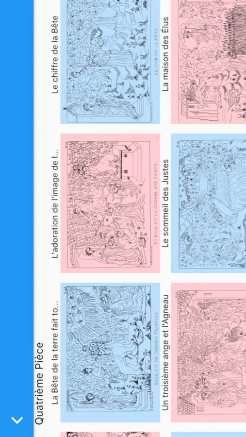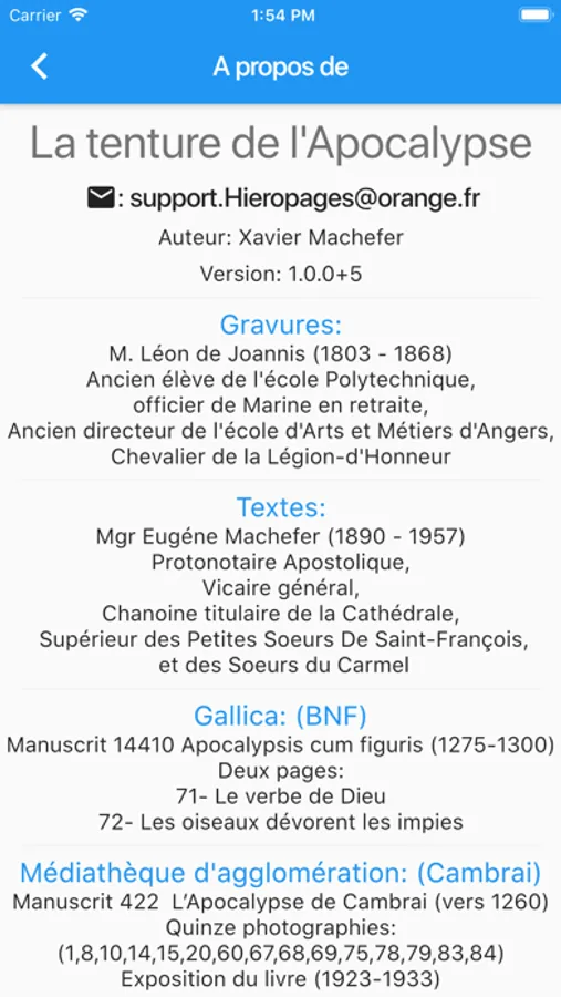 L'application s'appuie sur les gravures de M. Léon de JOANNIS et les textes (traduction de l'Apocalypse, commentaire, description) de Mgr Eugéne MACHEFER.