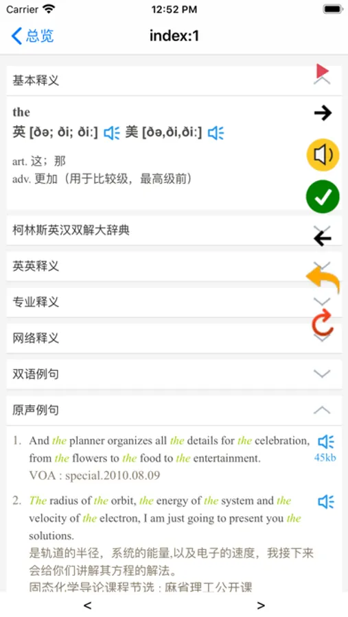 2.支持单词发音,让你学习单词的同时,熟悉发音,训练自己的听力反馈.