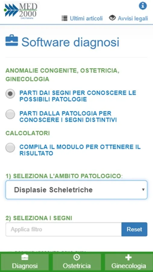 Tutti i dati riportati dall'app e dal software diagnosi non si applicano necessariamente a casi specifici, data anche la notevole variabilità di espressione di una malattia, per cui della diagnosi è sempre responsabile solo il Medico che utilizza le informazioni fornite.