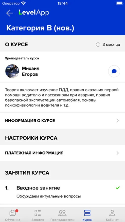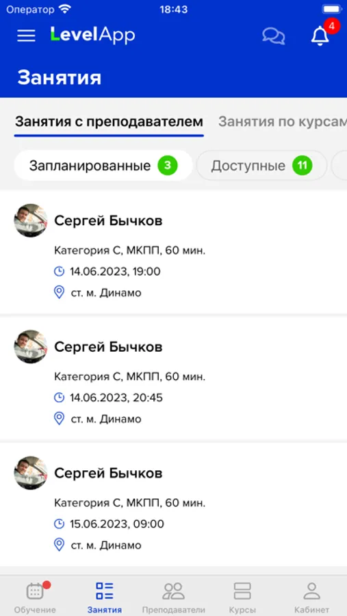Мобильное приложение LevelApp. Если вы инструктор - находите новых клиентов, формируйте график занятий, проводите занятия и получайте выплаты. Если вы клиент - выбирайте инструктора, общайтесь, оплачивайте занятия по безопасной сделке, используйте график занятий и напоминания о занятиях.