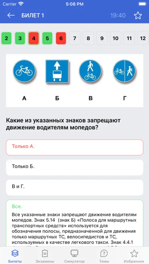 Симулятор экзамена ПДД, билеты, экзамены и темы ПДД.