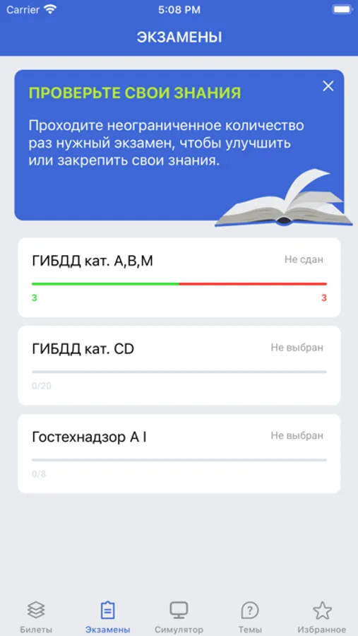 Подготовка к экзамену в ГИБДД по категориям A,B,M а так же по сборникам Гостехнадзор.