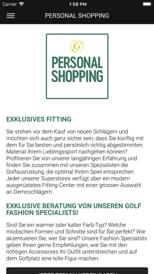 Sie wünschen sich exklusive Beratung? Ein persönliches Fitting? Wählen Sie einfach via App Ihren Berater aus und vereinbaren Sie Ihren persönlichen Termin.