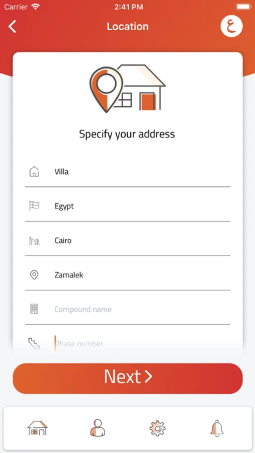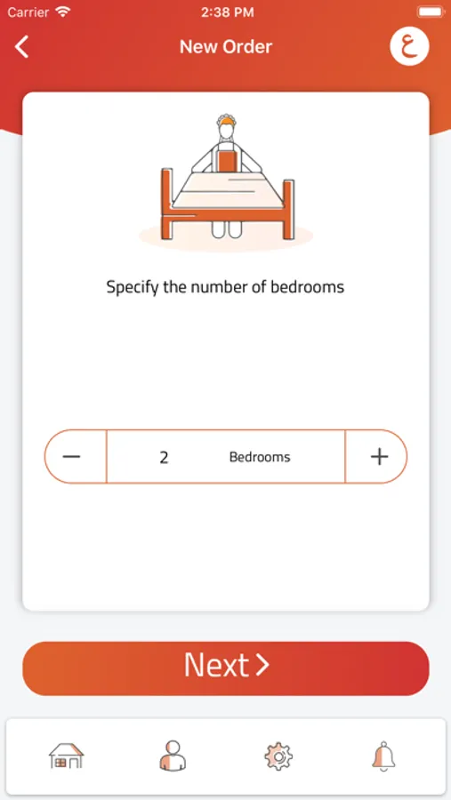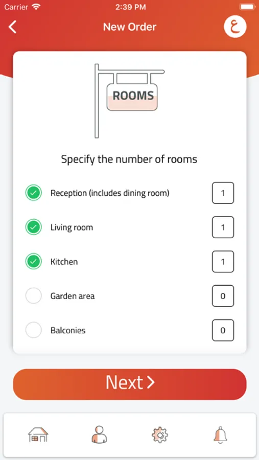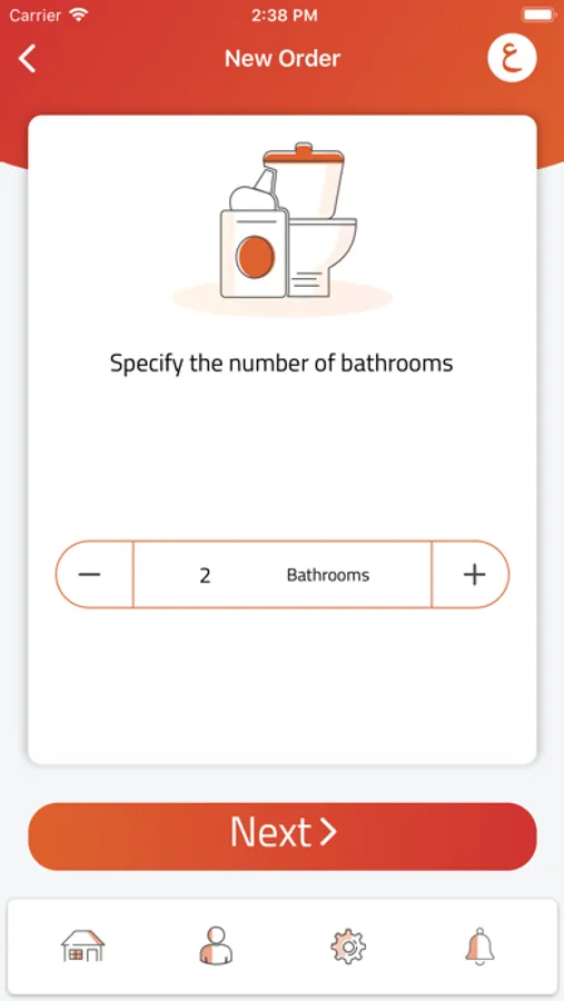• Open the Tandeefa app on your phone and select the number of rooms and bathrooms you have.