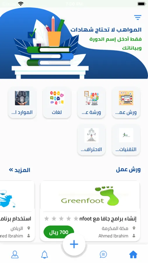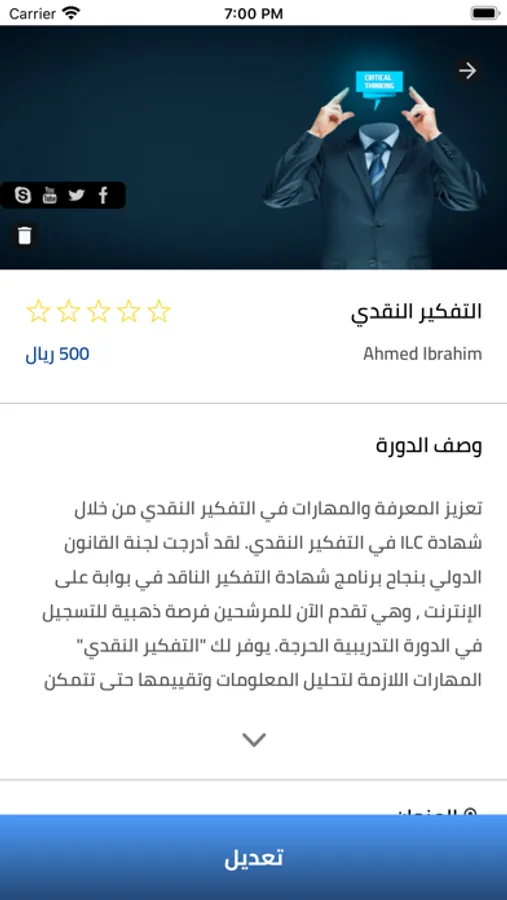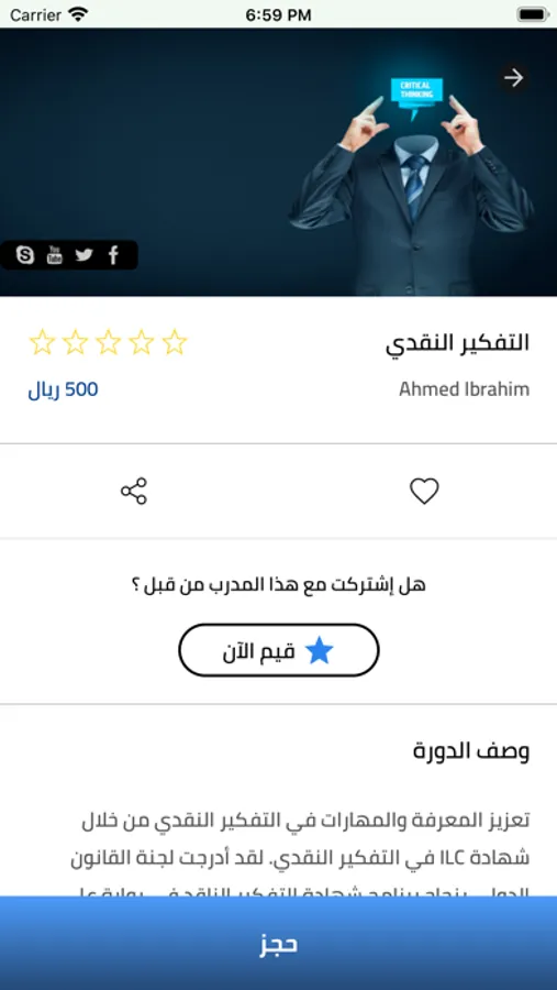 تطبيق مهاراتكم يمكنك من خلاله مشاهدة تفاصيل الدورات التدريبية وحجز مقعدك والتسجيل والسداد الإلكتروني للاشتراك في الدورات.. بادر وحمل التطبيق حتى تتمكن من الحصول علوم وخبرات أفضل المدربين والاستشاريين.
