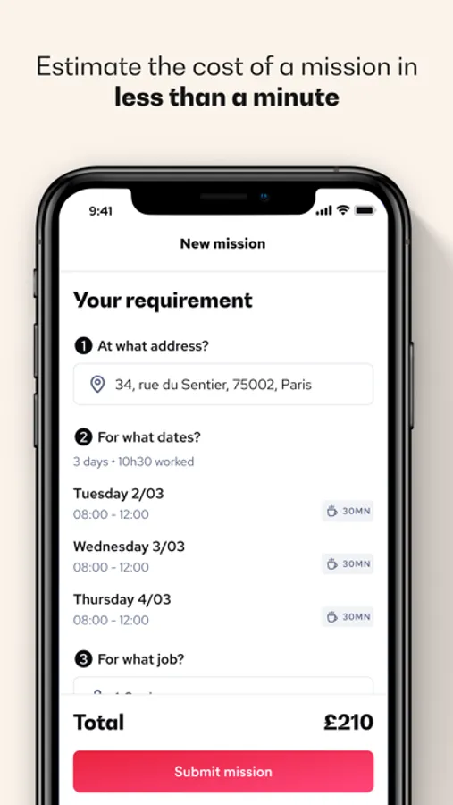 1. Formulate your need by indicating the address, the dates, the hours and the job for which you need reinforcement