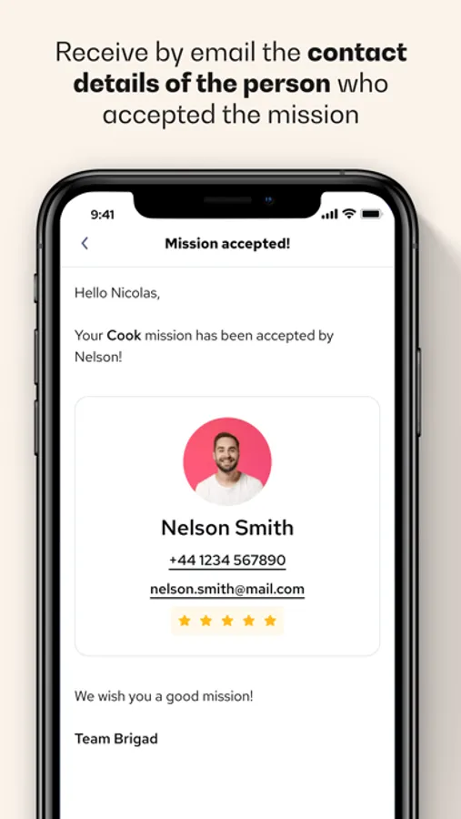 3. Receive by email the contact details of the person who has accepted your mission and contact them if necessary. 75% of the missions are filled in less than 30 minutes and even 20% in less than 3 minutes.