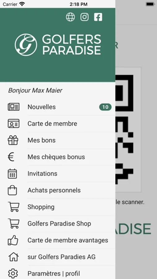 Un «must» pour tout les fans de golf: Avec l'App GOLFERS PARADISE MEMBER vous avez tous les avantages client GOLFERS PARADISE et votre Carte de Membre numérique toujours sur votre smartphone.