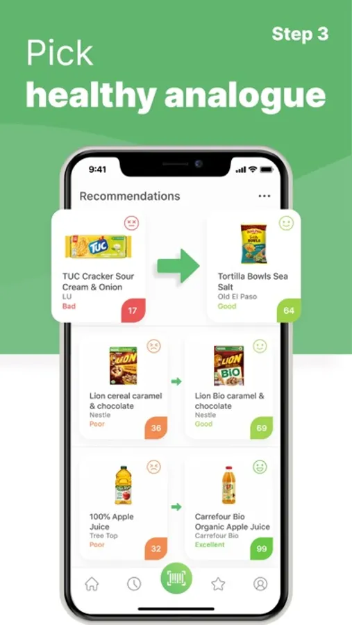 It's time to take care of the health of loved ones. The built-in scanner allows you to recognize all of the possible products and shows how safe they are for eating.