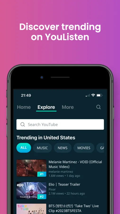 YouListen helps you listen to Music - Podcasts - Stories and Everything. You can save individual playlists to listen to everything easier and especially for free.