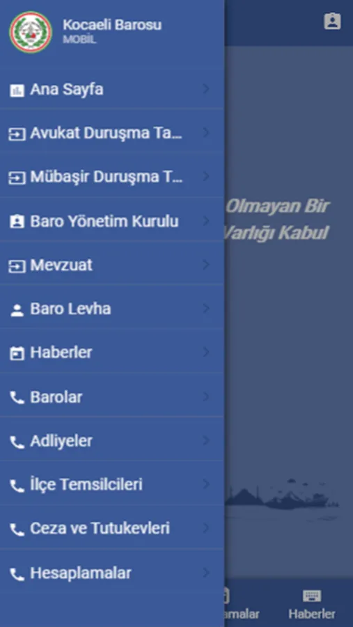 Kocaeli Barosu Resmi Uygulamasi. Kocaeli Barosunda Avukat ile Mubasir Arasındaki İletişim İçin Geliştirilmiş Bir Uygulamadır.