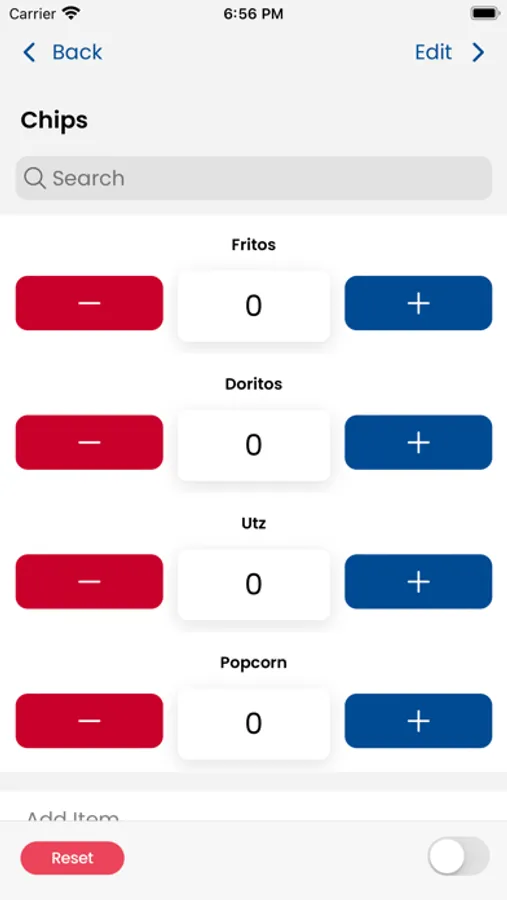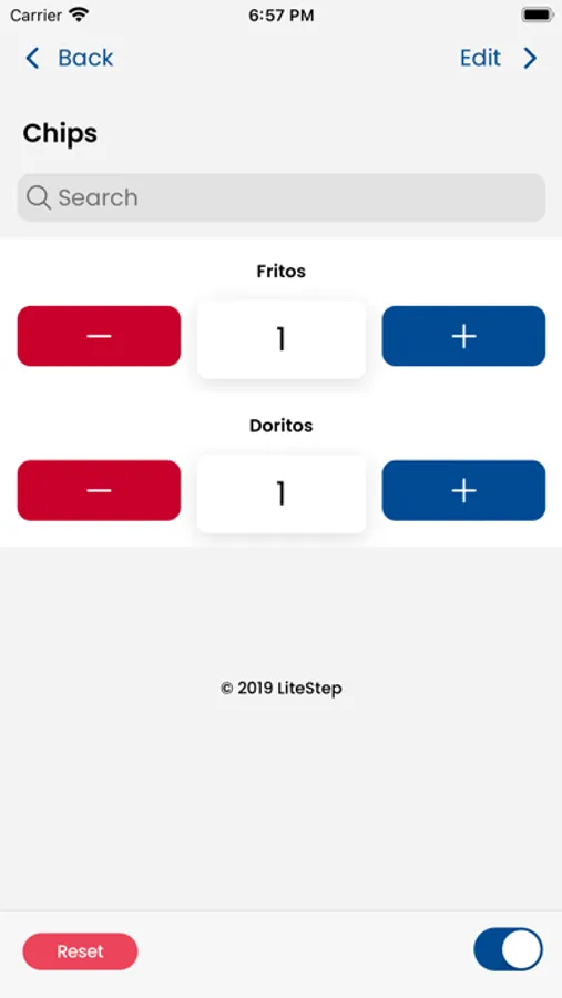 -Each items quantity may be tallied up or down or the quantity may be edited directly.