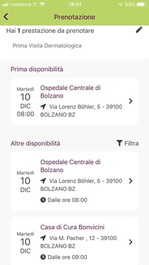 • prenotare appuntamenti presso tutte le strutture dell’Azienda sanitaria dell’Alto Adige e dei partner con essa convenzionati
