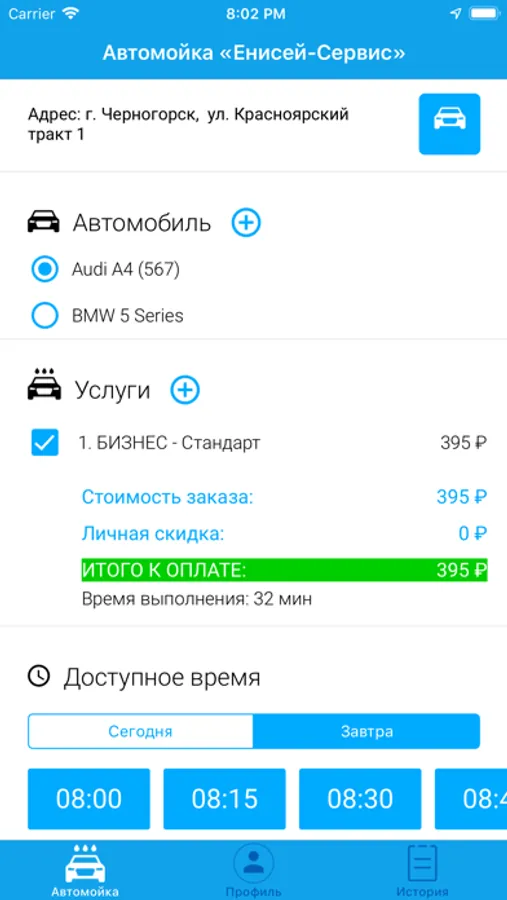 - Видеть все доступные места для записи автомойку;