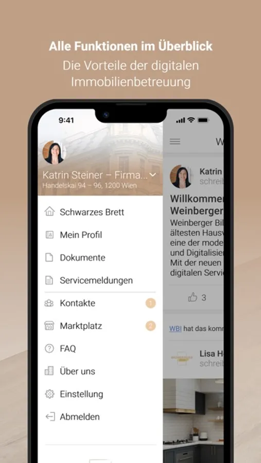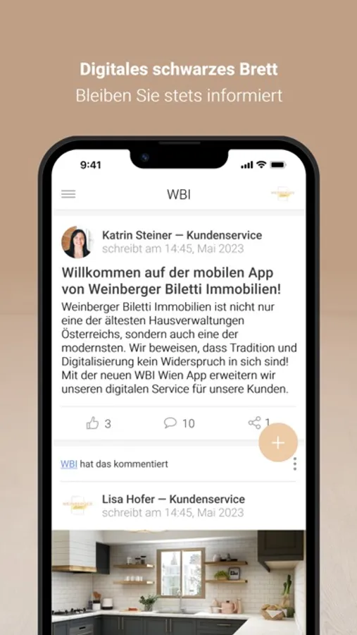 Mit der neuen WBI Wien App erweitern wir unseren digitalen Service für unsere Kunden. Denn beste Qualität und bester Service sind bei uns nicht nur Floskeln, sondern eine Unternehmensphilosophie. Sie können uns Ihre Schäden oder sonstige Anliegen rund um die Uhr, auch außerhalb unserer Öffnungszeiten, bequem über die neue WBI Wien App melden. Zusätzlich haben Sie alle wichtige Dokumente Ihrer Liegenschaft stets digital am Smartphone oder Tablet verfügbar.