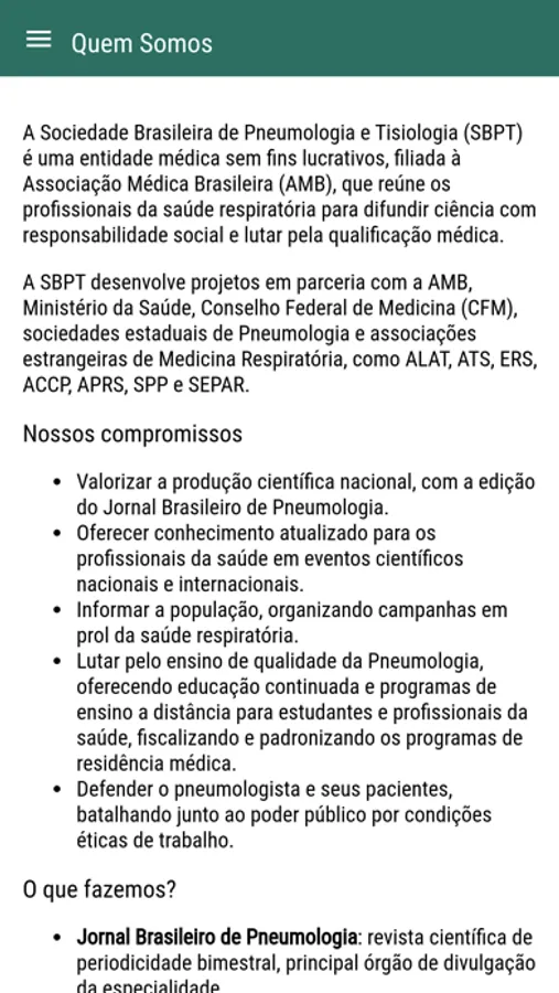 Defender o pneumologista e seus pacientes, batalhando junto ao poder público por condições éticas de trabalho.