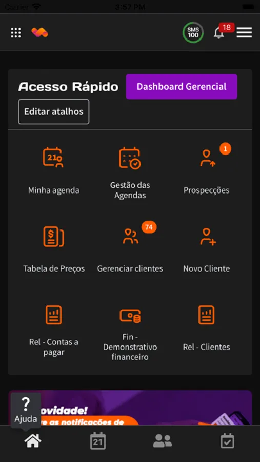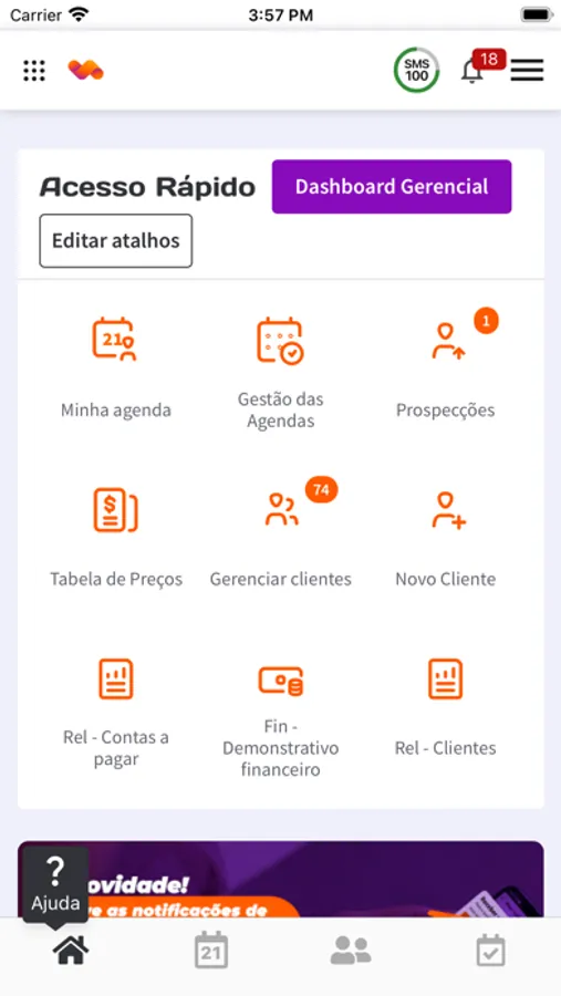 Controle atendimentos, remarcações, comissionamento de profissionais, envio de mensagens com lembretes, entre outras funcionalidades práticas e ágeis que tornarão seu dia mais dinâmico.