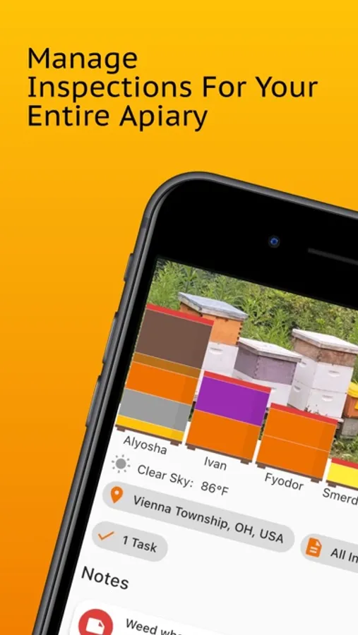• Keep your bees healthy. Log detailed inspections and quickly view the status of your hives.