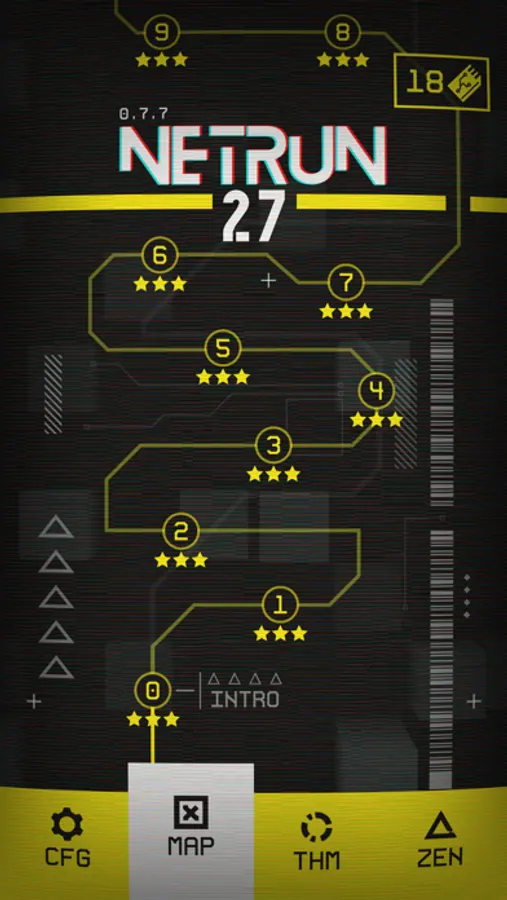 Play the STORY mode levels to uncover the mistery, or use the ZEN mode to practice your skills and collect Shards that allow to unlock many fun customizations and powerups.