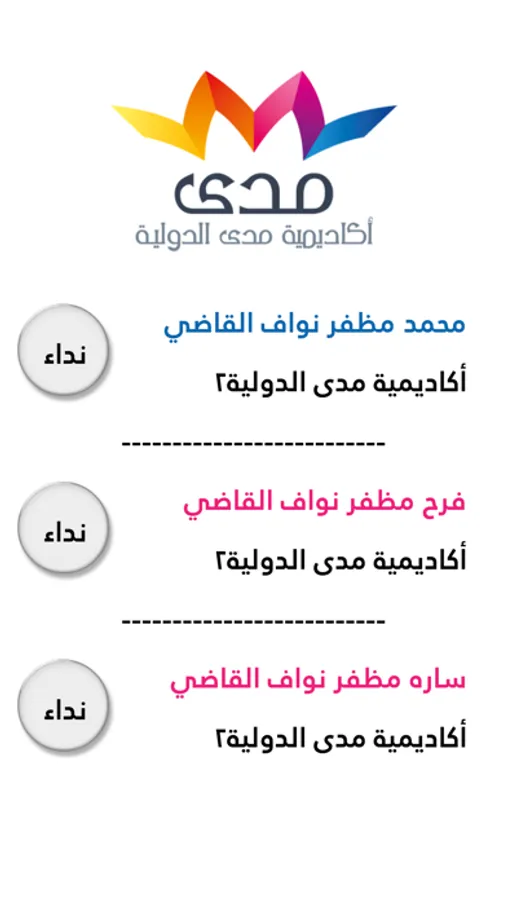 تم تصميم هذا التطبيق لتسهيل عملية استلام الطلاب من ذويهم وبشكل أسهل وأسرع، حيث يقوم الشخص الذي يرغب باستقبال الطالب بضغط زر النداء ويصل هذا النداء لفريق عمل المدرسة والذي يقوم بدوره بإحضار الطالب وتسليمه للشخص المعني دون الحاجة لإضاعة الوقت بالبحث عن مكان للإصطفاف أو البحث عن الشخص المسؤول عن مناداة الطالب وهذا في النهاية يقلل زمن تواجد أهالي الطلاب في منطقة المدرسة بنسبة كبيرة مما يخفف من الأزمات ويسهل عمل الجميع ويوفر الوقت على الجميع ناهيك عن فوائد التطبيق في فصل الشتاء