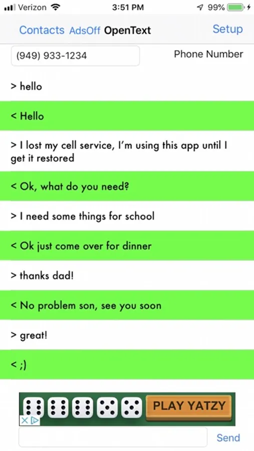 Text from any device including iPads! Receive, and send texts to all phones.