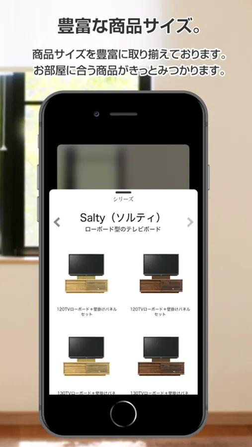 まずは、気になる商品をお選びいただき、ご自分のお部屋などに試し置きのシミュレーションをすることができます。
