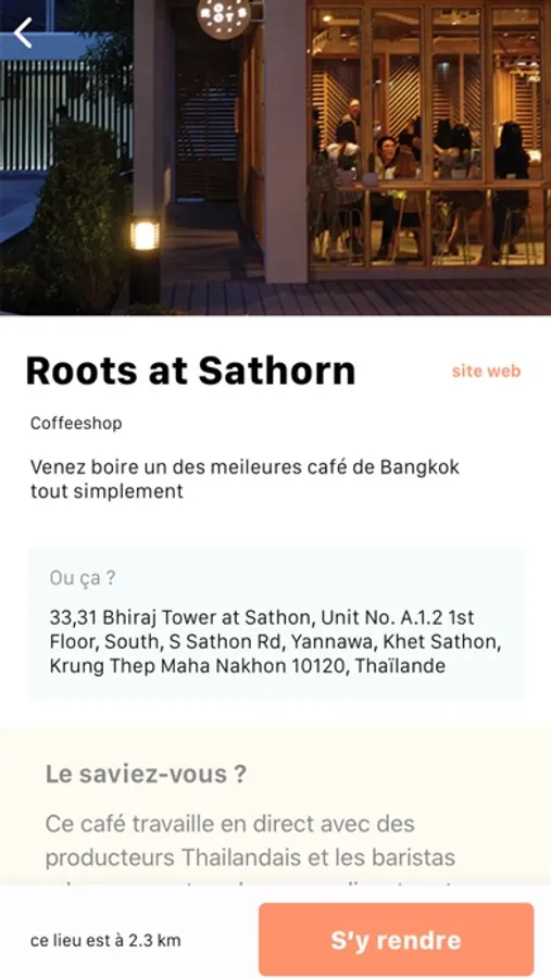 Depuis la page du lieu, vous pouvez en activant le bouton “S’y Rendre” passer le trajet sur votre app de trajet habituel: maps ou plans.
