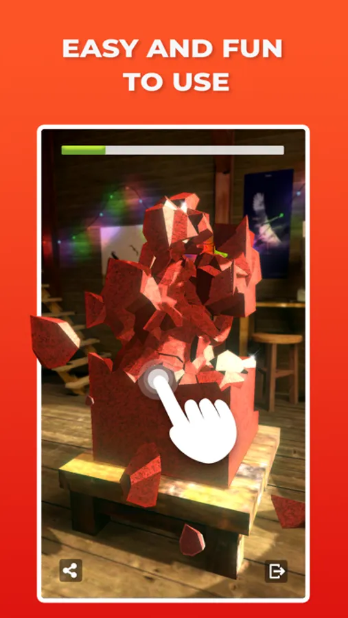 Tap the block to knock off portions of stone. Zoom in and out, rotate and carve the sculpture from different sides. Work at a speed that is comfortable for you. There are no limitations in time and the number of taps. Relax and enjoy your time revealing cute sculptures. Once the sculpture is ready, you can share your creation with friends.