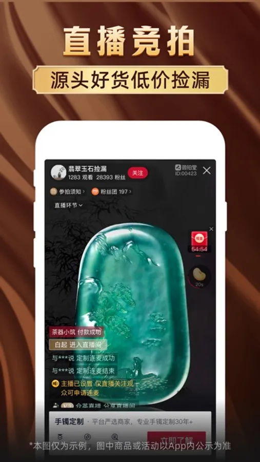 微拍堂从事文玩行业5年,是一家专注于经营文玩领域的线上直播竞拍鉴宝平台。微拍堂开创“直播竞拍+免费鉴宝”的创新商业模式,革新了文玩艺术品市场交易规则。在文玩鉴宝层面,平台入驻近百名从业7 年以上鉴定大师,为广大用户提供免费的1对1在线直播鉴定服务;在文玩竞拍层面,目前平台拥有近千名名家匠人,拍品类目覆盖玉翠珠宝、紫砂陶瓷、书画篆刻、茶酒滋补等八大品类,并设立1000万消费者保障基金,有假必赔,让用户买的放心!