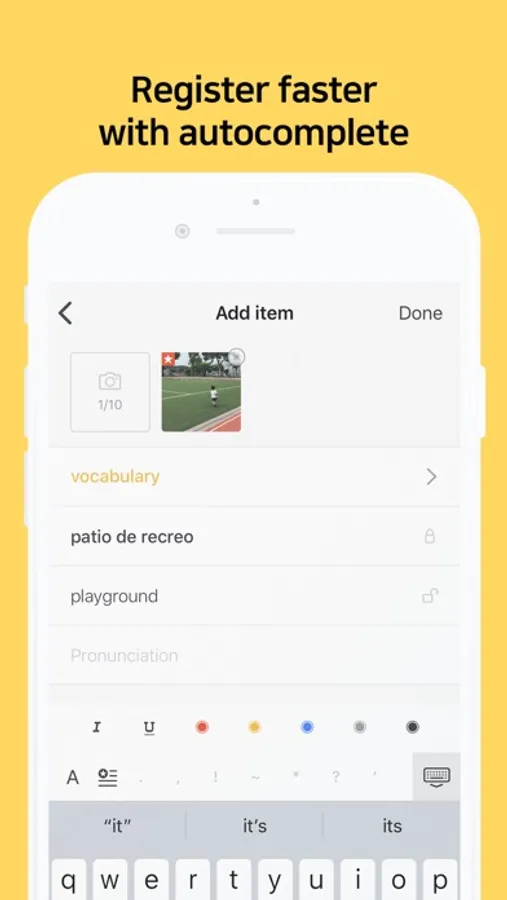 The data is stored on iCloud, and it automatically syncs with your other iOS devices; with a simple UI easy to understand at first glance, you can easily add words and sentences in all languages of the world.
