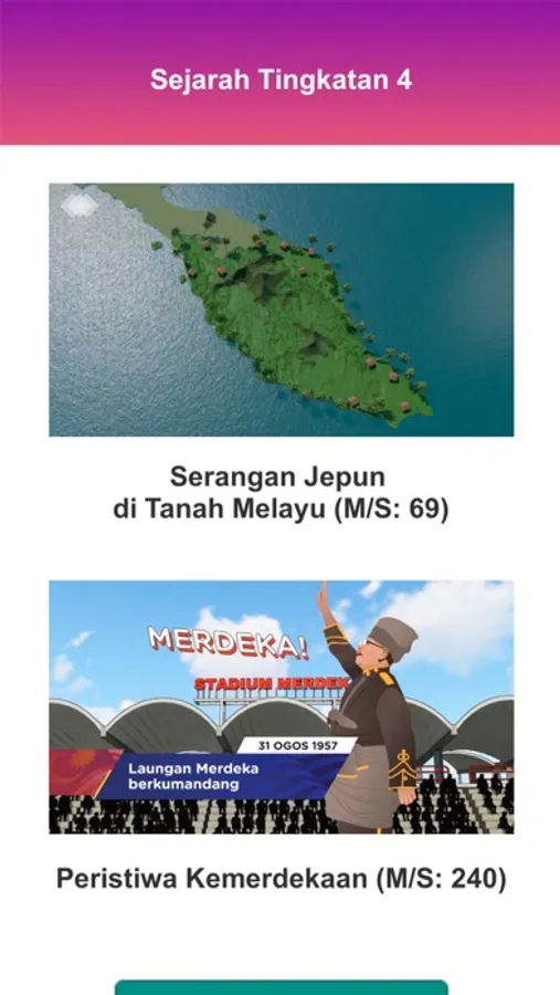 Aplikasi ini merupakan aplikasi Augmented Reality (AR) bagi Buku Teks Sejarah Tingkatan 4 terbitan Dewan Bahasa dan Pustaka