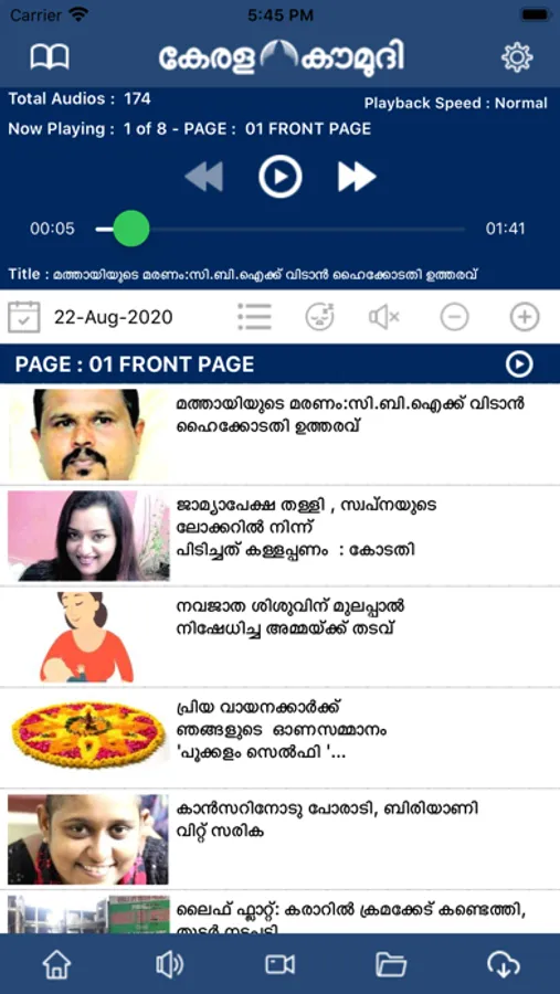 The Kerala Kaumudi ePaper is India’s first multimedia newspaper. All the 9 print editions of the newspaper are replicated in the electronic format. Besides, it includes an extended ePaper with 24 plus pages and 50% more content than the print edition. Several novel features have been integrated into the electronic format. Audio delivery of the content and visual stories are created to enhance reader experience.