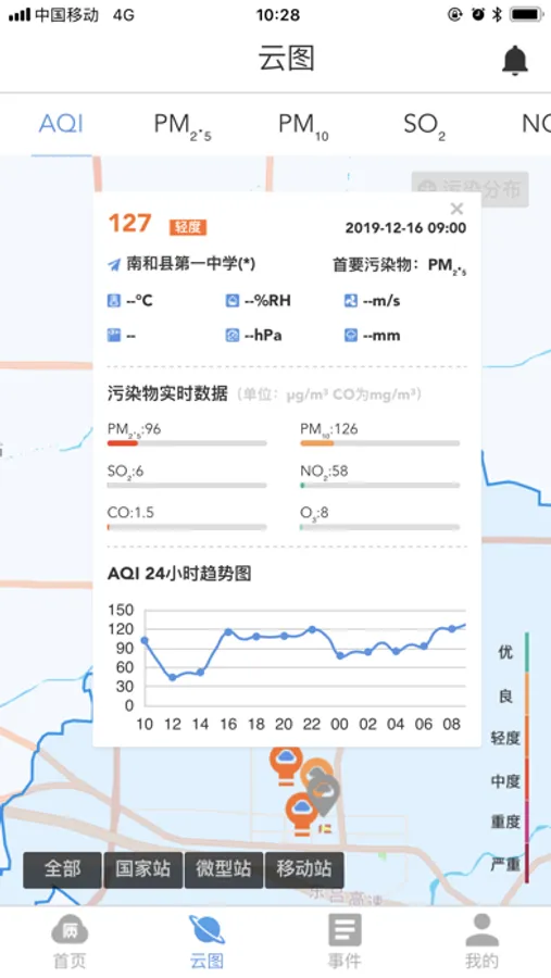 配套城市空气质量网格化综合管控平台的APP应用,实现数据展示、查询、分析以及污染事件上报和网格员考核等功能