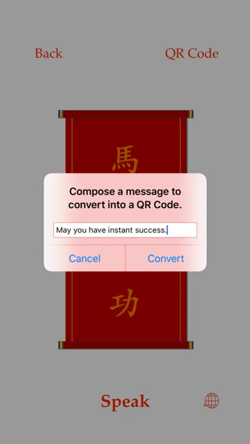 - You can send the image of the Chinese scroll with the QR Code to people - loved ones, acquaintances, and friends by clicking on the share button.