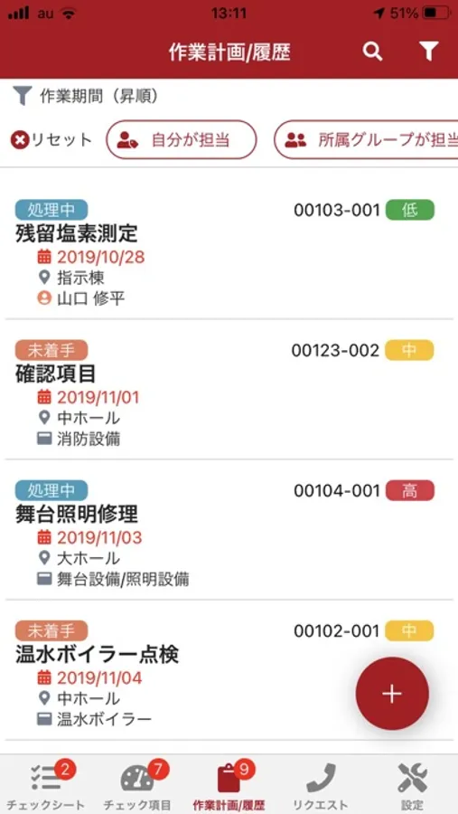 現場担当者は、アプリを通して作業の指示を受け取ることができます。