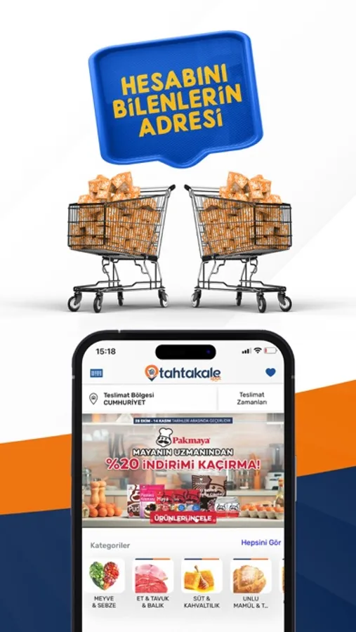 Binlerce ürün tek bir uygulama ile cebinizde. Meyve sebze gibi taze ürünler, et, şarküteri ürünleri, unlu mamüller, temizlik, kişisel bakım ürünleri, atıştırmalıklar ve içecekler gibi onlarca kategoride binlerce ürün parmaklarınızın ucunda. Bir marketten alabileceğiniz ne varsa hepsi tek bir uygulamada. Kanun gereği online siparişlerde tütün mamülleri ve alkol satışı yapılamamaktadır.