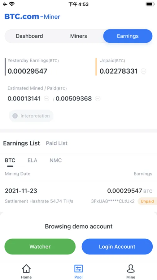 4.【Earning】Supports viewing daily earnings and payment,and support multi address proportional settlement.