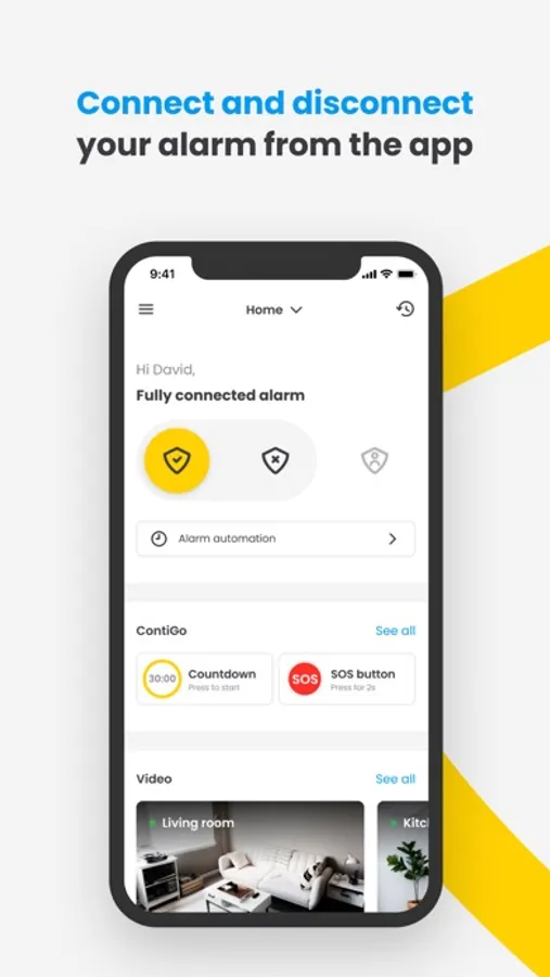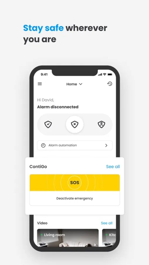 - View live videos and access the recordings for both cloud video and CCTV (if you have available these services).