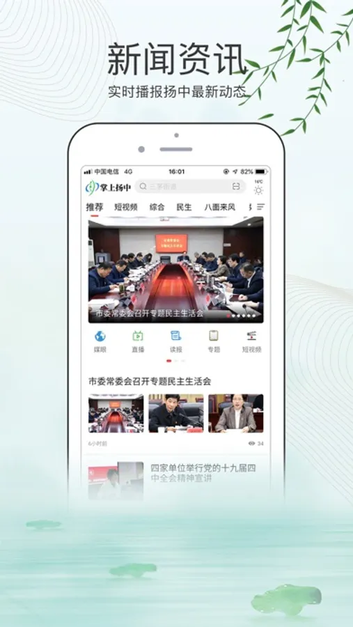 “掌上扬中”是扬中融媒体中心主打新媒体客户端产品,主要提供本地资讯发布、扬中电视频道及广播频率内容的在线直播和点播观看,立足本地政务和民生服务,为本地群众提供问政服务和公共服务渠道,打造集资讯和服务为一体的本地门户产品。