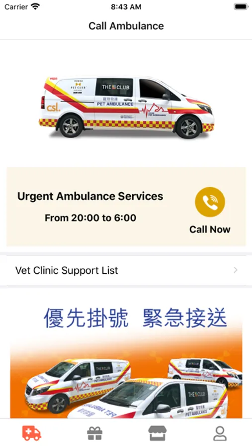(The first professional Pet Ambulance Crew in Hong Kong ,it covers Hong Kong Island, Kowloon and New Territories, Allianced with 24 hours Veterinary Clinic.)