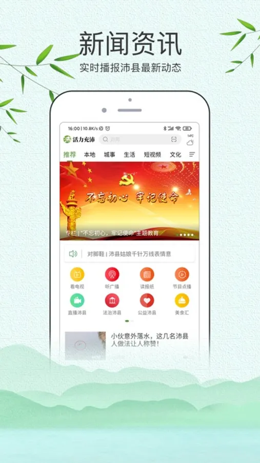“活力充沛”是沛县融媒体中心主打新媒体客户端产品,主要提供本地资讯发布、沛县电视频道及广播频率内容的在线直播和点播观看,立足本地政务和民生服务,为本地群众提供问政服务和公共服务渠道,打造集资讯和服务为一体的本地门户产品。