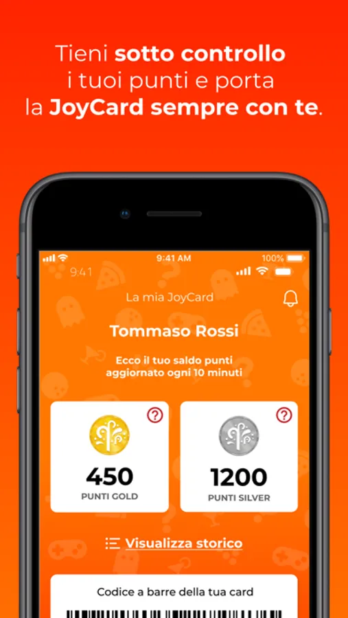 Con JoyApp avrai inoltre la tua JoyCard sempre con te e potrai tenere sotto controllo il tuo saldo punti.