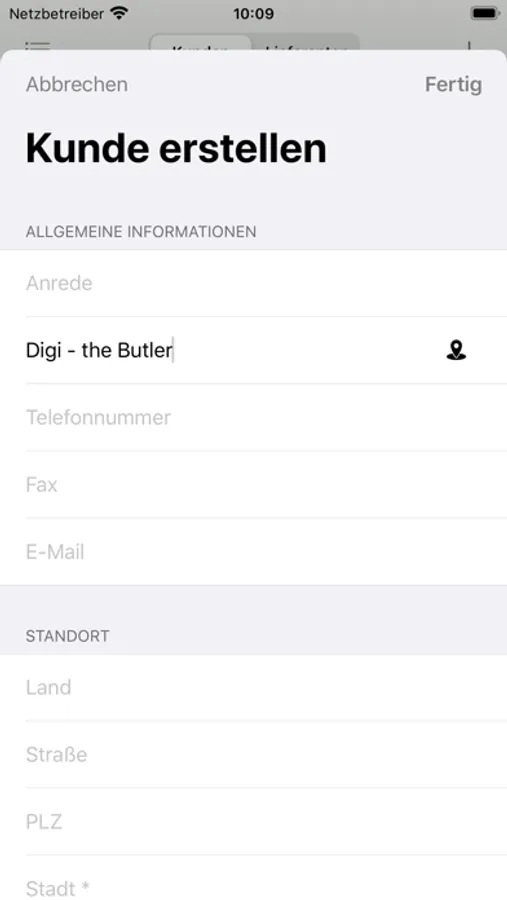 Die Kundenerfassung erfolgt in einem schlanken Formular und die Daten können mit Hilfe von Google Maps automatisch ausgefüllt werden.