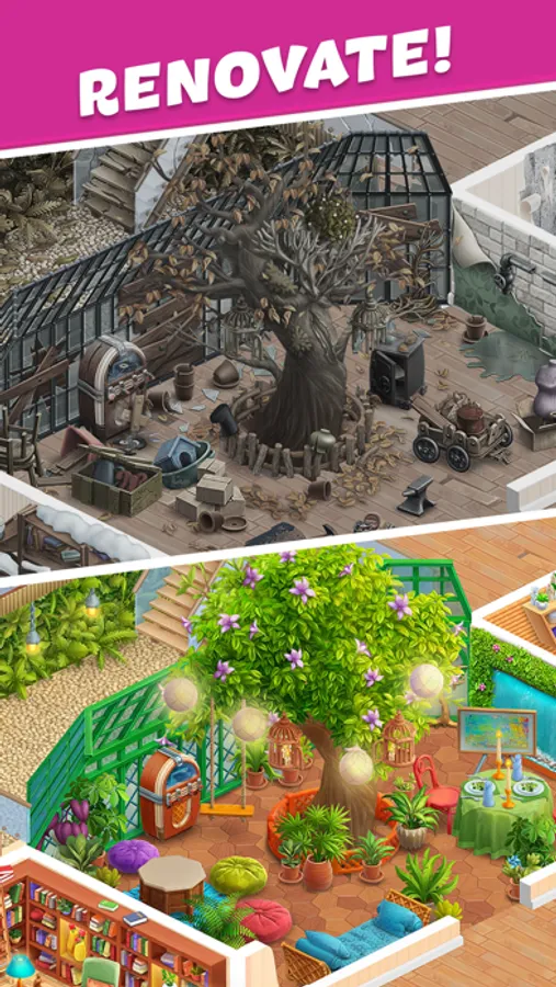 Renovate and redecorate the rooms to suit your taste. Decorate every corner of the mansion until you feel at home!