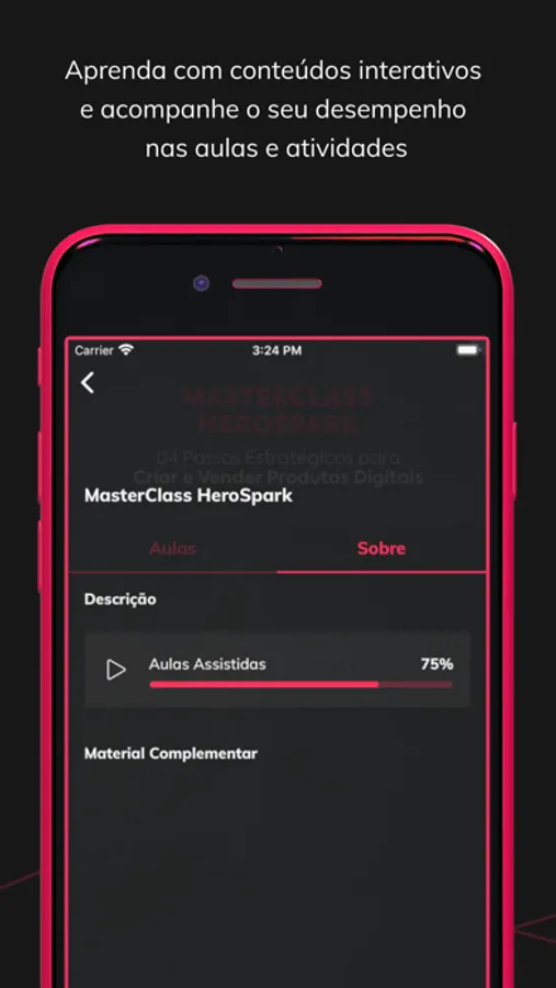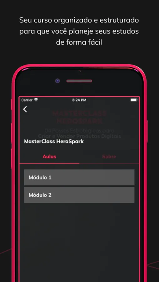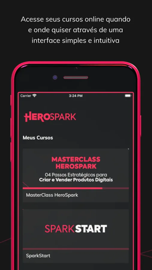 Com o aplicativo da HeroSpark, você tem acesso aos seus cursos online através de uma interface simples e intuitiva.