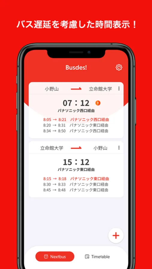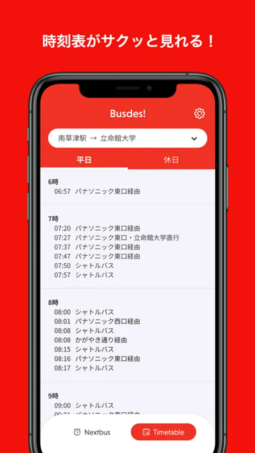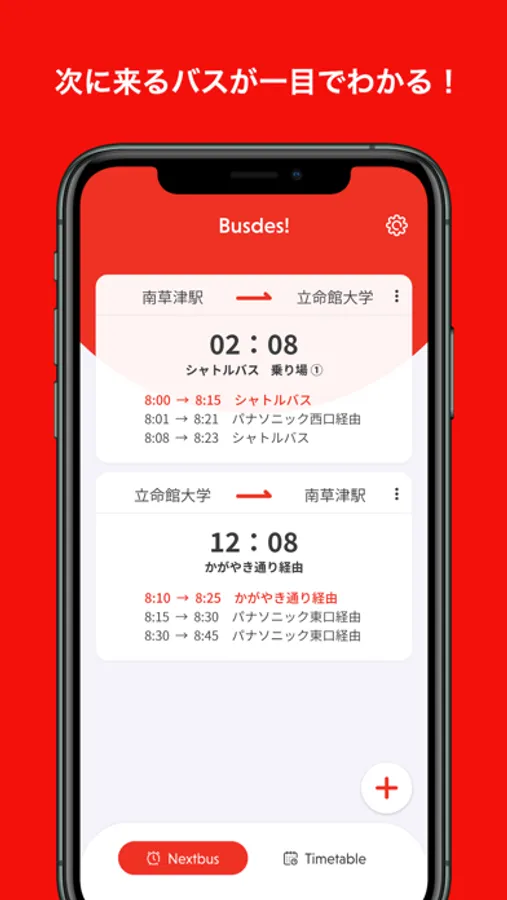ついに立命館大学生向けのバスアプリがリリースされました!!リアルタイムでのバスの接近情報や、平日/休日の時刻表がすぐ見れる!!さらに、途中のバス停の情報も自分でカスタマイズ出来る!!