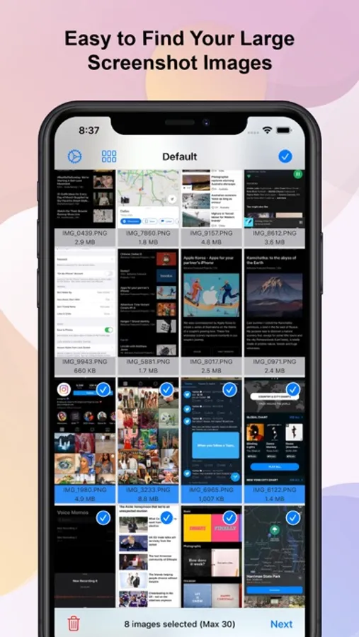 Compress your screenshot images up to 30x reduction of file size with same quality.